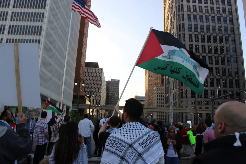 Julia Kassem, one of the demonstration’s organizers and a member of the U.S. Palestinian Community Network in Detroit (USPCN-Detroit), said she was there to protest the U.S. government’s actions against the consensus of the international community and the American people.