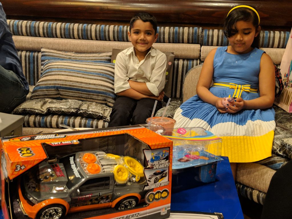 Farah, whose name translates to “joy” in Arabic, said she loves drawing and would someday day like to teach art. Mohammed, her 6-year-old brother, sports a black bandana. He’s pretending to be a pirate and examines his new toy truck.