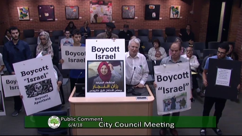 For more than a decade, Coleman has protested with signs and chants at Ann Arbor City Council meetings, asking that it hold a public hearing, so people can speak out in support of BDS at the city level.