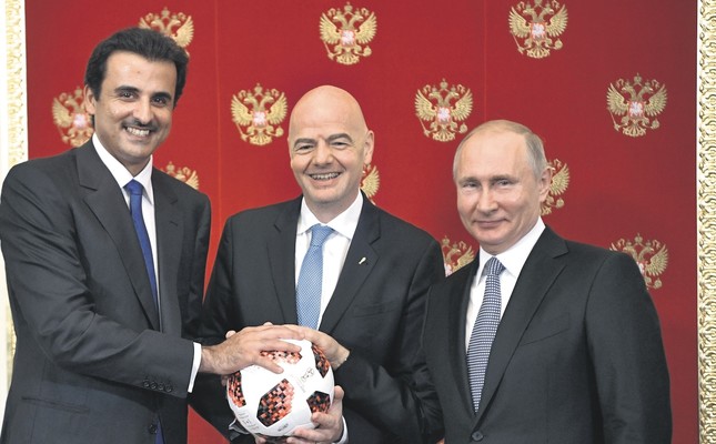 Just few hours before the final game between France and Croatia which brought down the curtain on Russia’s hosting of this year’s tournament, Qatari Emir Sheikh Tamim bin Hamad al-Thani joined Putin and FIFA chief Gianni Infantino at a Kremlin ceremony.