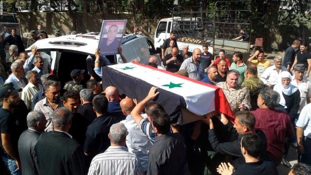 Coffins of victims draped in Syrian flags had been brought from the main city hospital as thousands thronged to pay homage to the victims as the city closed down in mourning.