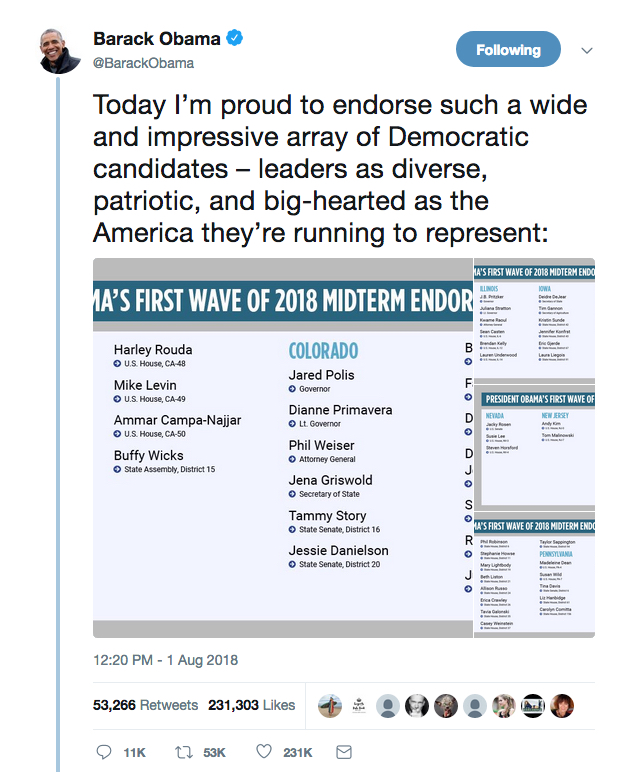 Campa-Najjar, 29, is one of nearly 100 Democrats across the country who were endorsed Aug. 3 by Barack and Michelle Obama; the former first couple released the list of candidates and pledged to lend them their support ahead of the midterm election this November.