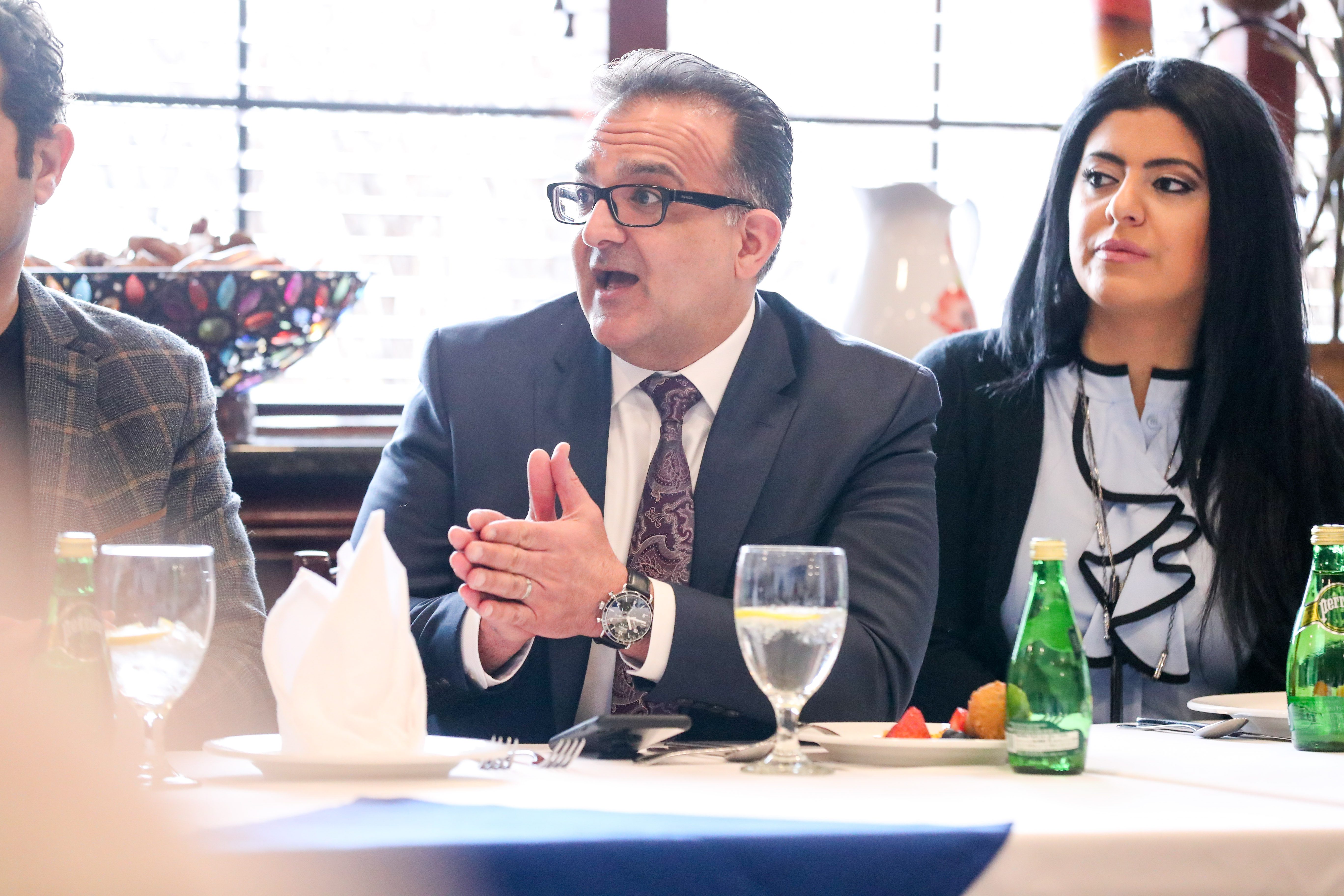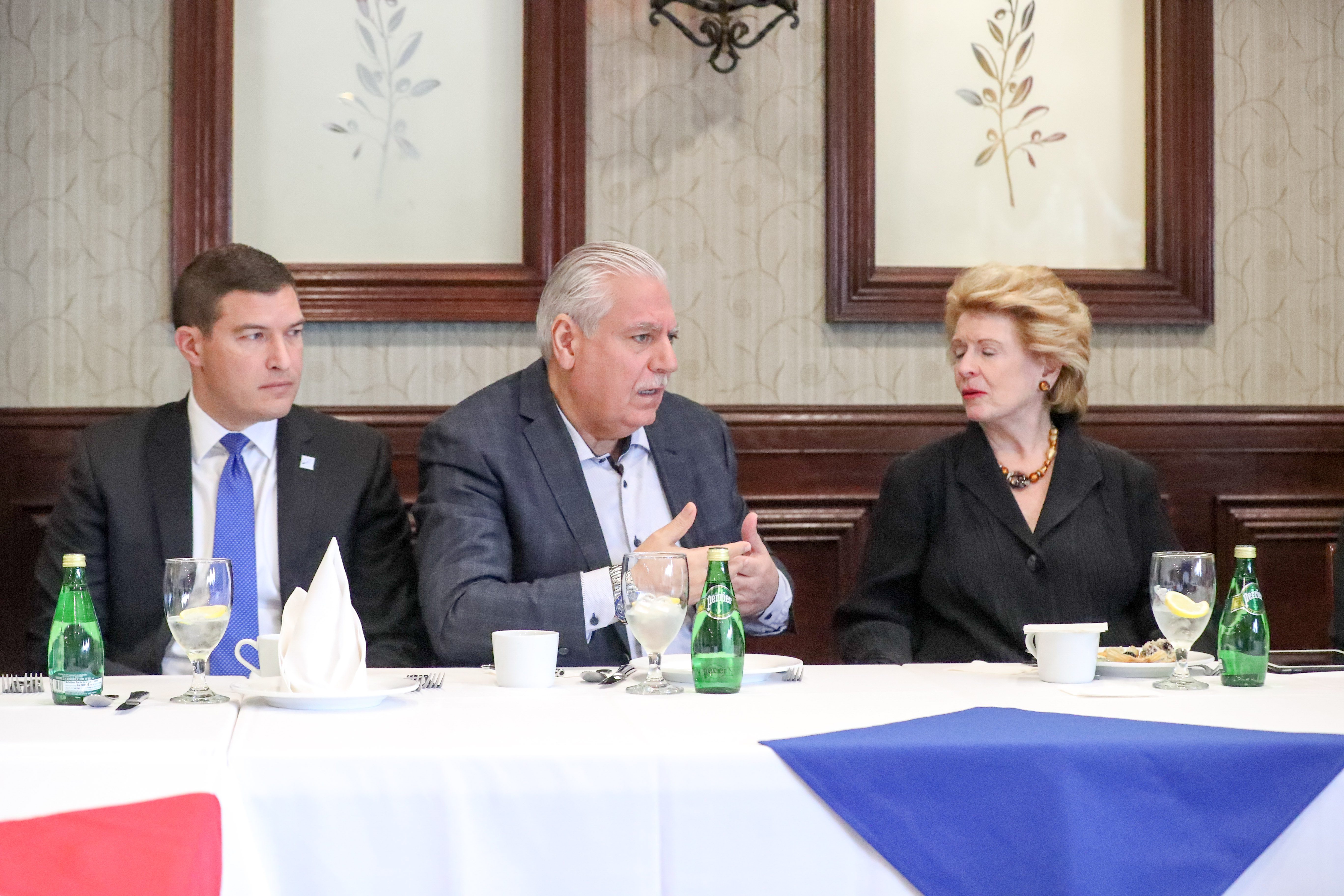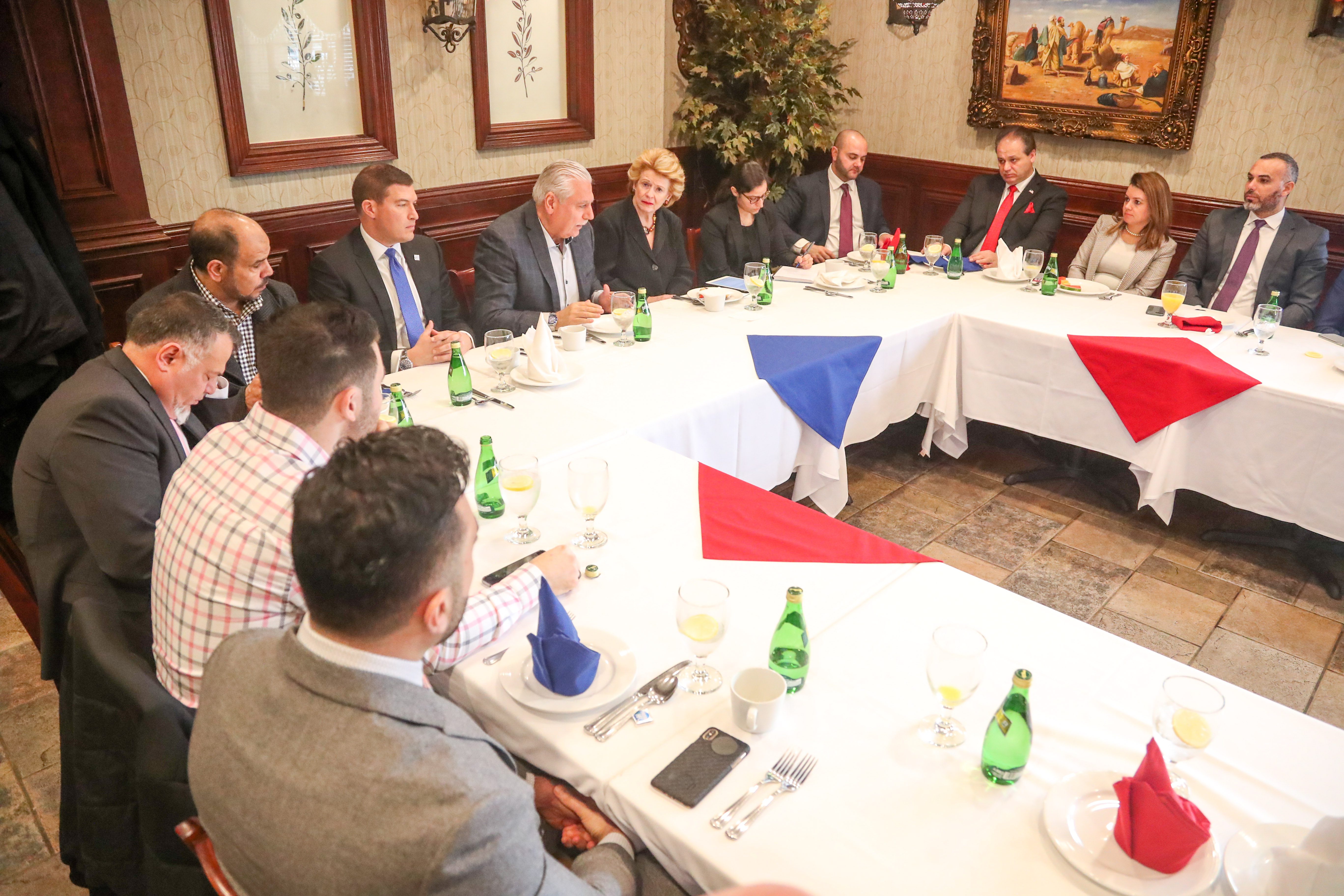 Among those present for the meeting were Wayne County Commissioner Sam Baydoun, attorney and Wayne County Airport Authority Board Chairman Nabih Ayad, State Rep. Abdullah Hammoud (D-Dearborn), attorney and AAPAC President Mona Fadlallah, Dearborn City Council President Susan Dabaja, Dearborn City Council President Pro Tem Mike Sareini, Dearborn Heights City Councilman Dave Abdallah, Hamtramck City Councilman Saad Almasmari, Stabenow and members of her staff.