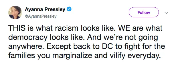 “This is what racism looks like,” tweeted Pressley, a Massachusetts congresswoman, after Trump said the freshman Democrats should “go back” to the countries “from which they came.”