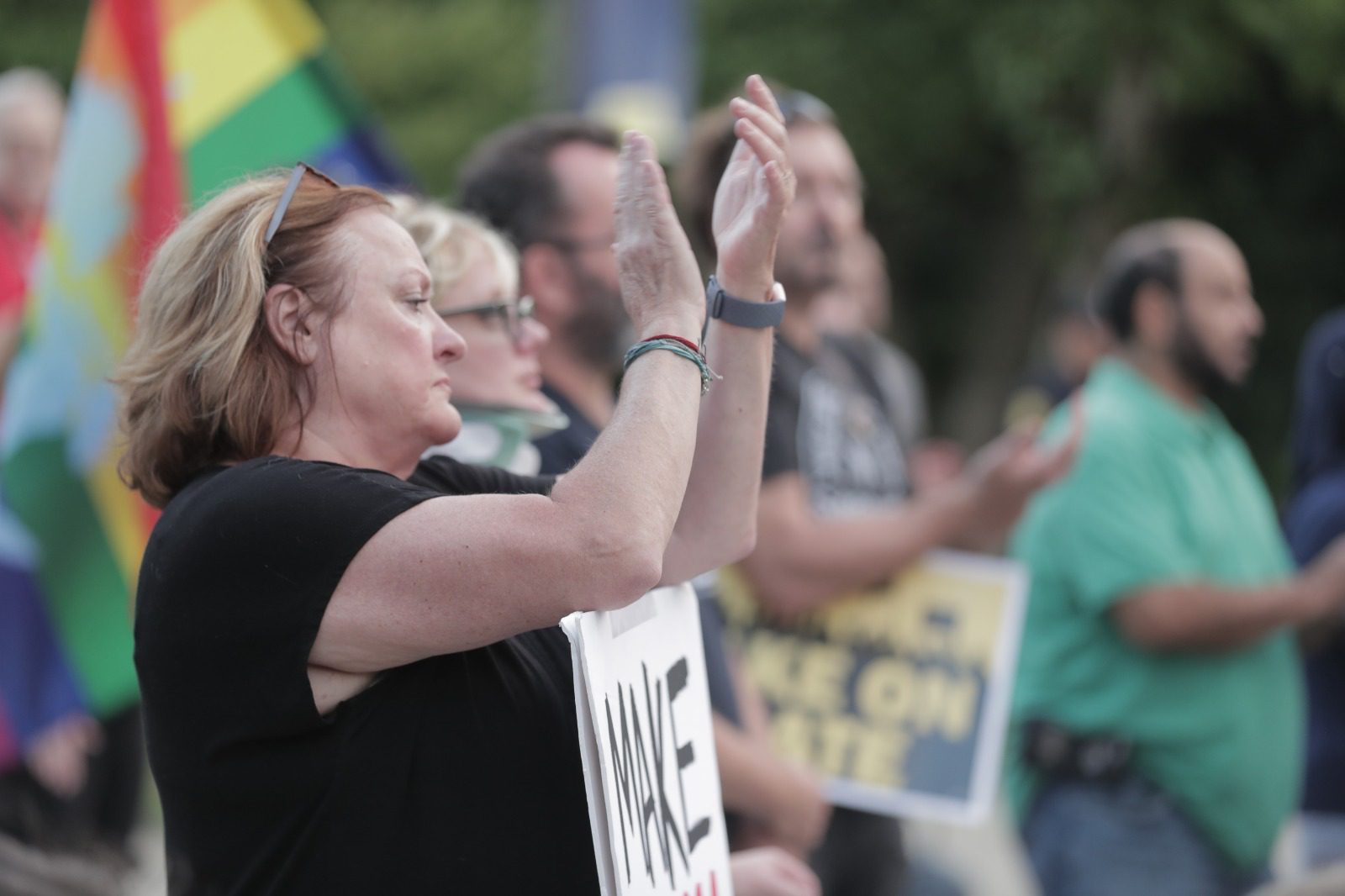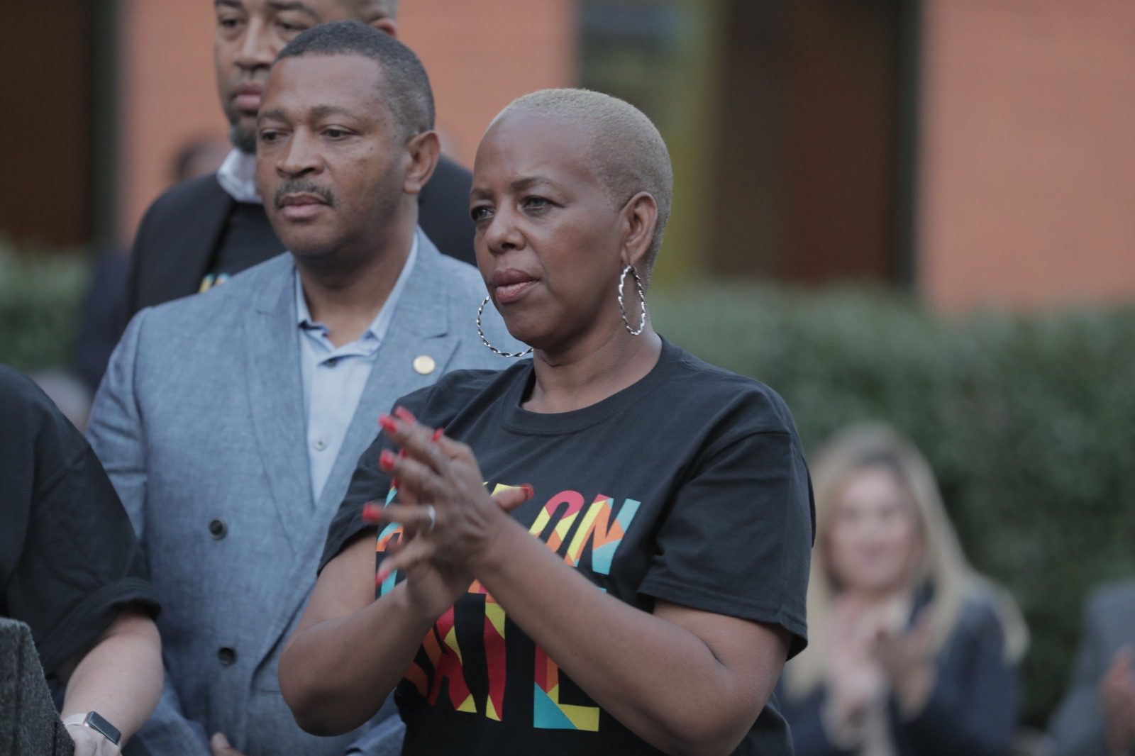“As they try to dehumanize us, speak up, as they try to attack your neighbors, speak up,” she added. “I don’t care if it’s my African American brother down the street that is being targeted because anti-Blackness is so real in our country, or if it’s my LGBTQ sister. Please know that there are more of us than them.”