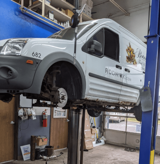 On a quiet Monday, he works with technician Alberto Colón on repairing a delivery van for a gourmet gift basket company, moves from auto bay to auto bay servicing other vehicles, fields a phone call from a potential customer in Denver, Colorado and assists customers at the front desk as part of his first-of-its-kind in Michigan low income auto repair program.