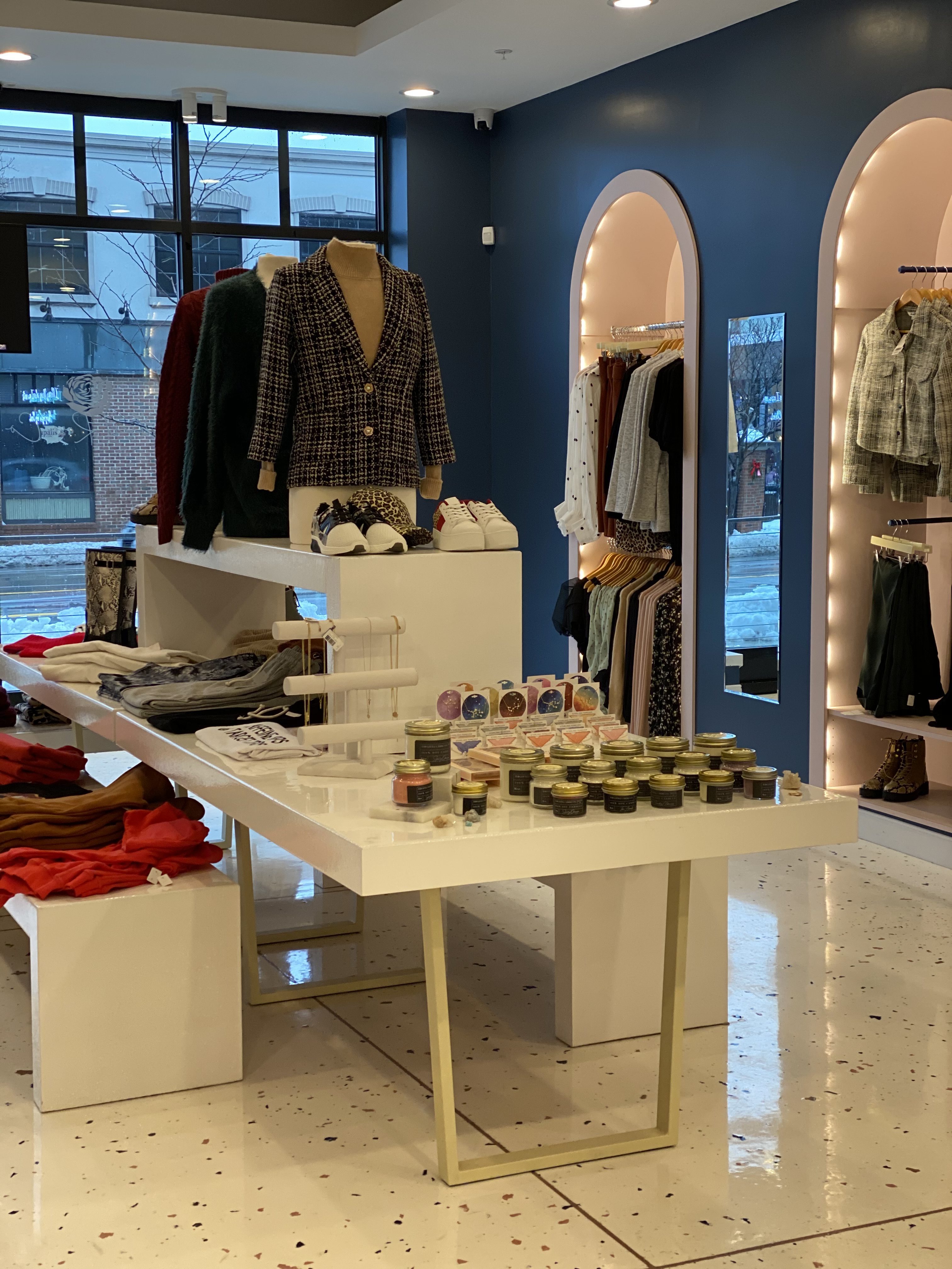 This process of research and development would take three years. Last year, she attended a seminar in Detroit for entrepreneurial women, where she was inspired by a talk from a boutique owner, Laura Horwath of Ferne Boutique. Ajami began to realize the possibility of owning a physical boutique.