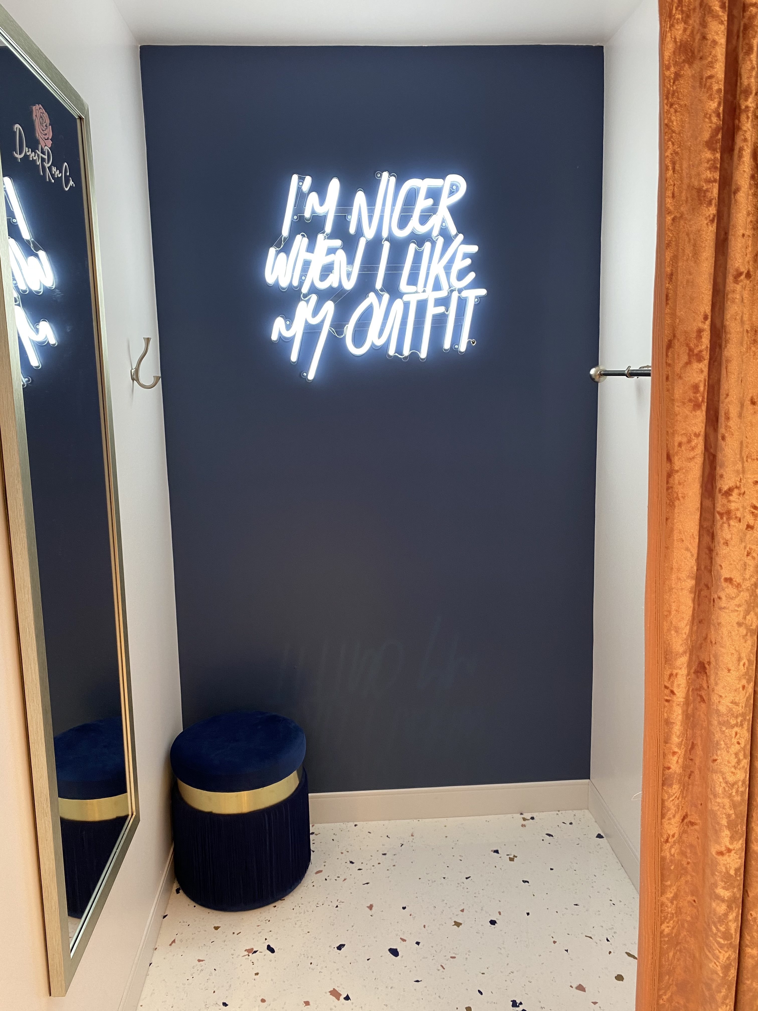 She traveled to trade shows and did extensive research to find the brands that fit the needs of her customer base: A young, sophisticated, modern woman living in the Dearborn area, but who has an eye towards broader trends. The inventory reflects this style, where Instagram-chic meets high-quality fabrics and craftsmanship, and includes modest fashion for her Muslim customers.
