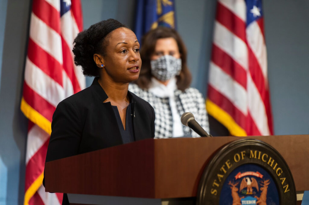 Michigan’s chief medical executive, Dr. Joneigh Khaldun, speaks at a press conference in Lansing, May 26. Photo: Governor’s Office