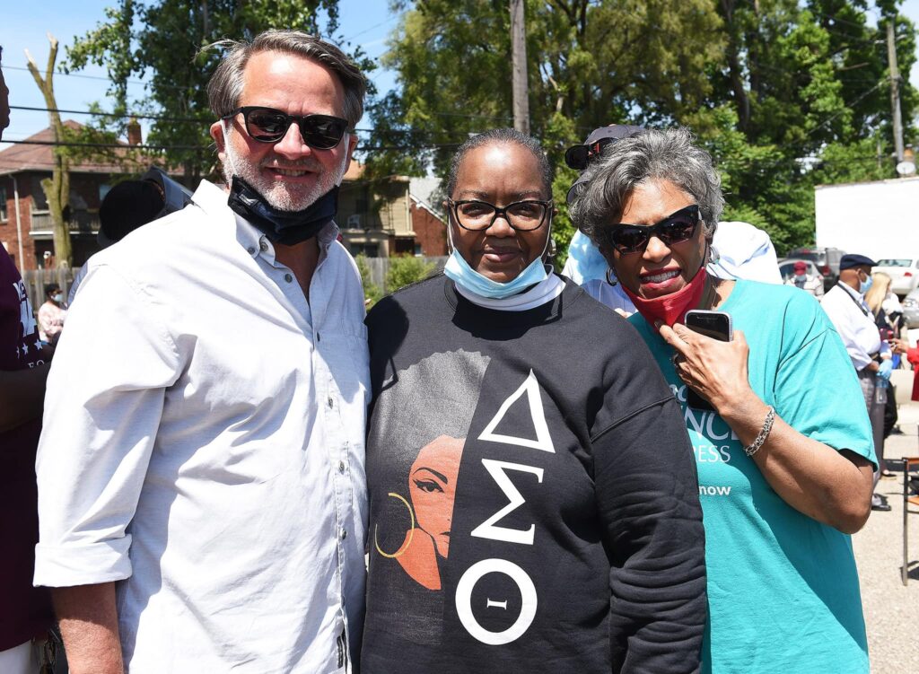 Wayne County Prosecutor Kym Worthy (center) with two of her endorsees, U.S. Senator Gary Peters (D-Michigan) and U.S. Rep. Brenda Lawrence (D-Southfield). Photo courtesy: Kym Worthy