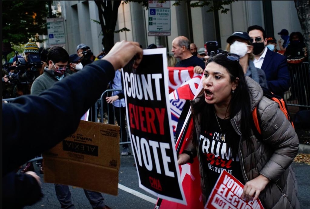 Supporters of President Trump protest as votes continue to be counted in Philadelphia, Pennsylvania, Nov. 5. Photo: Reuters
