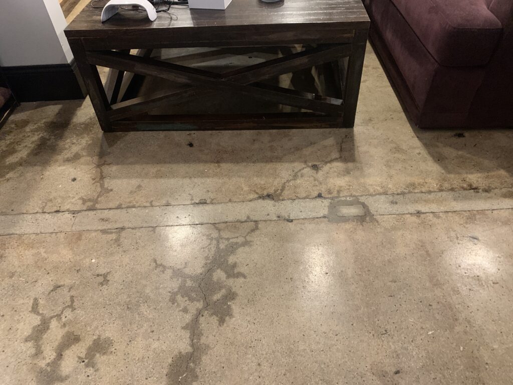 Water around cracks in the flooring in Ramsey Turkmani’s apartment