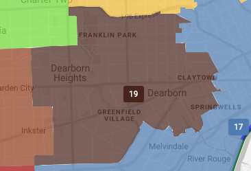 Dearborn and Dearborn Heights split in two State House districts. Photo: Screenshot/City Gate GIS