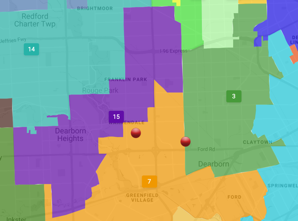 Currently, the Dearborn area districts are District 2 for Congressional, District 19 for State Senate and Districts 3, 7 and 15 for State House. From there a comment can be added to particular districts. Michigan-mapping.org also lets people submit comments and self-created maps.