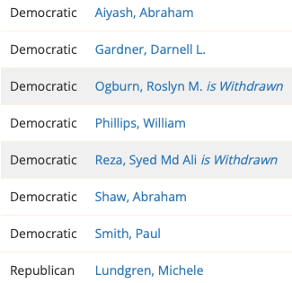 The following list appears on the Michigan Department of State’s website and includes candidates who have withdrawn their names from each race.