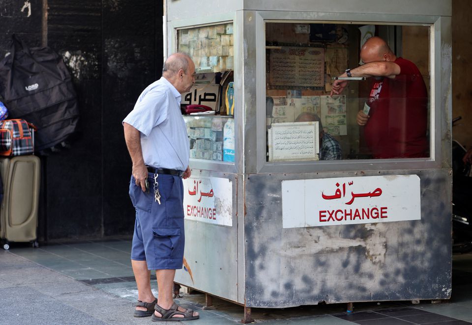 A man stands outside a currency exchange booth in Beirut, Lebanon, Sept. 29. Photo: Aziz Taher/Reuters