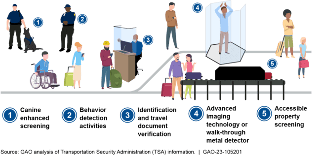 Examples of TSA passenger screening practices at airport checkpoints that can result in referrals for additional screenings. Image via GAO