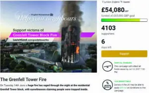 Screenshot of campaign which received international support for the Grenfell Tower victims and families through a LaunchGood campaign.