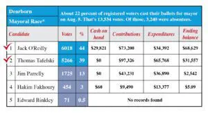 Of the 60,752 registered voters in Dearborn, 22.58 percent (13,718 voters) went to the polls on Aug. 8. That’s a 4 percent drop from last year’s primary elections, but still higher than that in the 2013 primaries, which had races for the same municipal seats as this year.