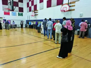 Voters wait in line to cast their ballots at Salina Elementary School – Photo by The AANews