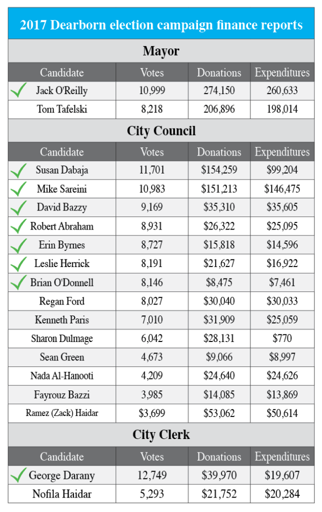 DEARBORN — Candidates in Dearborn’s Nov. 7 municipal elections spent almost $ 1 million during the election, according to the Wayne County Clerk.