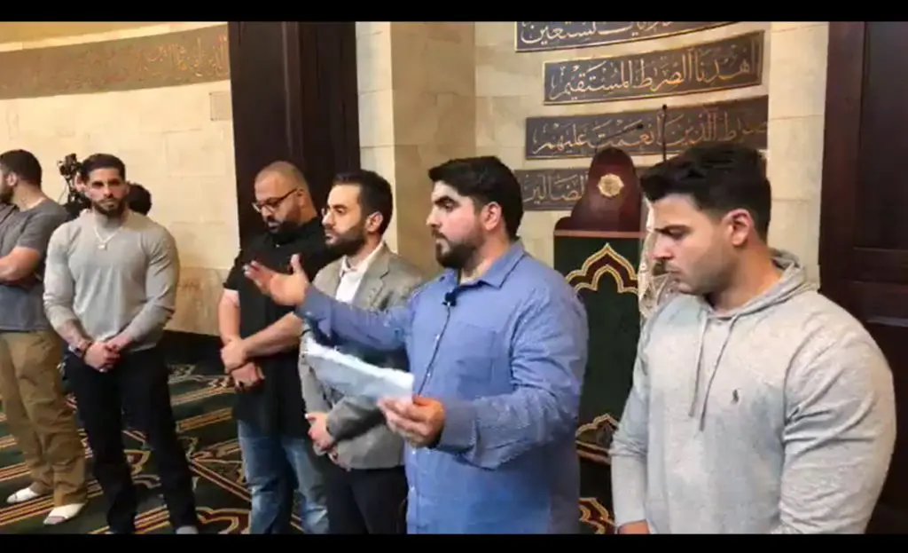 A screen grab of a video showing congregants at the Islamic Center of America on May 6 voicing their concerns about Israeli soldiers who were hosted during an interfaith event on April 14